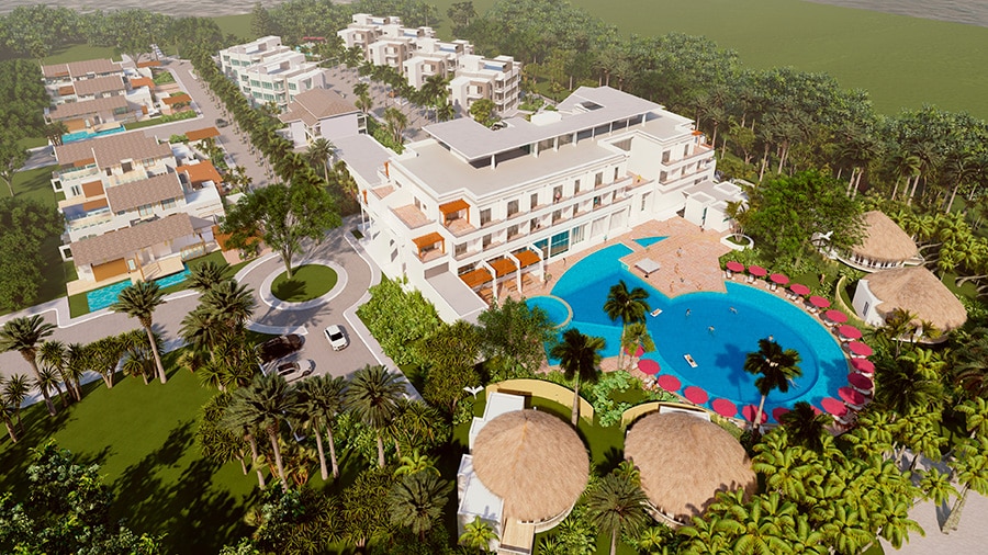 Este complejo contará con 44 Habitaciones de Hotel, 36 Unidades de Condominio, 7 Villas y 4 Bungalows.